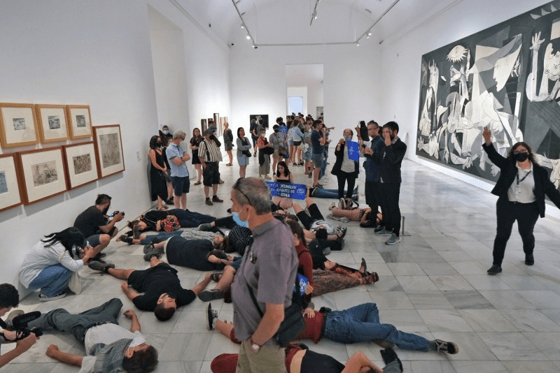 ACTIVISTAS PROTESTAN FRENTE AL GUERNICA CONTRA LA CUMBRE DE LA OTAN EN MADRID