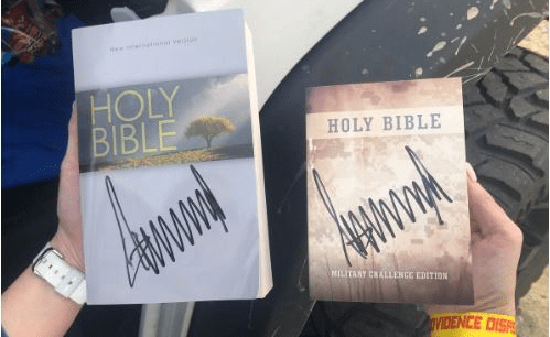 Por su parte, Bill Leonard, fundador y profesor emérito de divinidad en la Escuela de Divinidad de Wake Forest (Increíble, pero es la traducción menos extravagante que hemos encontrado) declaraba, sin ningún tipo de congestión, asma o soplo cardiaco, que Trump había firmado las biblias en una iglesia, no en un mitin político y que habría sido mucho peor si se hubiera negado a hacerlo, pues habría implicado mala educación y desprecio por la gente.