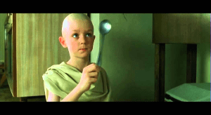 Neo sabe que es cierto todo lo que le está diciendo Morfeo; que tiene una astilla en el cerebro, en el corazón, en la consciencia, que no le deja vivir. En la película, esa inquietud y esa extrañeza tiene el nombre de Matrix, un mundo irreal fabricado: «Es un mundo con el que te han tapado los ojos para que no puedas ver la verdad.»