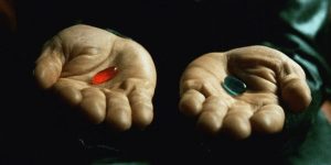 Antes de responder a esta pregunta debemos entender una trágica realidad que Morfeo desvela a Neo. «Desgraciadamente, no se le puede decir a nadie lo que es Matrix. Lo tiene que ver por él mismo.» Ya hemos visto el proceso –la extrañeza nos lleva a la búsqueda, y esa búsqueda nos hace contactar con el elemento escénico que nos muestre la verdad, y después cada uno debe elegir escrupulosamente: «Esta es tu última oportunidad. Después de esto no hay retorno posible. Si tomas la pastilla azul, la historia acaba. Te despertarás en tu cama y creerás en lo que quieras creer. Si tomas la pastilla roja, te quedas en el país de las maravillas, y te mostraré lo profundo que puede llegar a ser el agujero del conejo (referido al cuento de Alicia en el país de las maravillas).» Cuando Neo se decide por la pastilla roja, Morfeo le advierte: «Recuerda, lo único que te ofrezco es la verdad, nada más.»