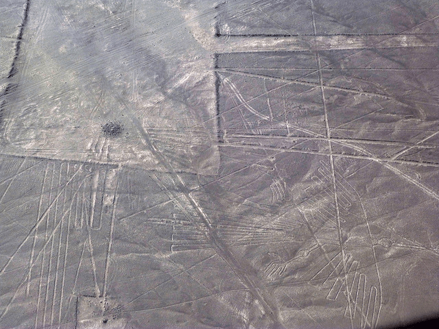 Si no somos capaces de explicar estas “marcas” o “señalizaciones” esparcidas por la región de Nazca, en Perú, significa que nuestra cosmogonía o cosmovisión es errónea. No tenemos una plantilla que podamos superponer sobre lugares, objetos y acontecimientos, que nos dé la interpretación correcta de todos ellos. Todas estas figuras están siempre asociadas a un complejo entresijo de líneas que se entrecruzan por encima de los dibujos, como si fueran ellas las que realmente marcasen o señalasen lugares o direcciones.